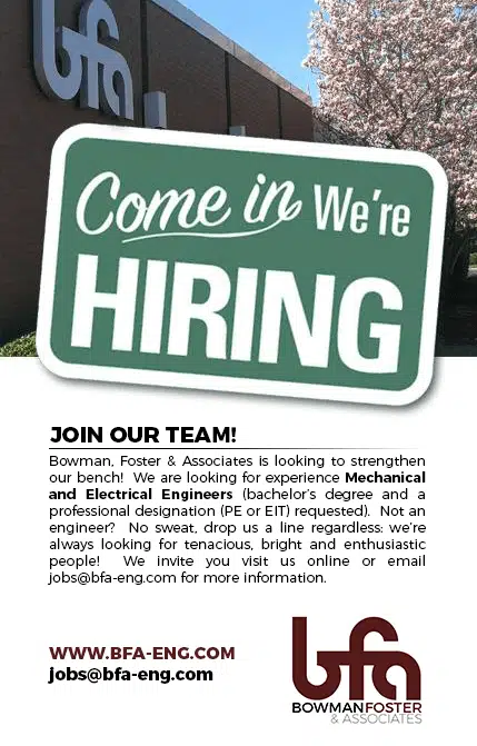 Bowman, Foster & Associates is looking to strengthen our bench! We are looking for experienced Mechanical and Electrical Engineers (a bachelor’s degree and professional registration (PE or EIT) are required). Not an engineer? No sweat, drop us a line:...